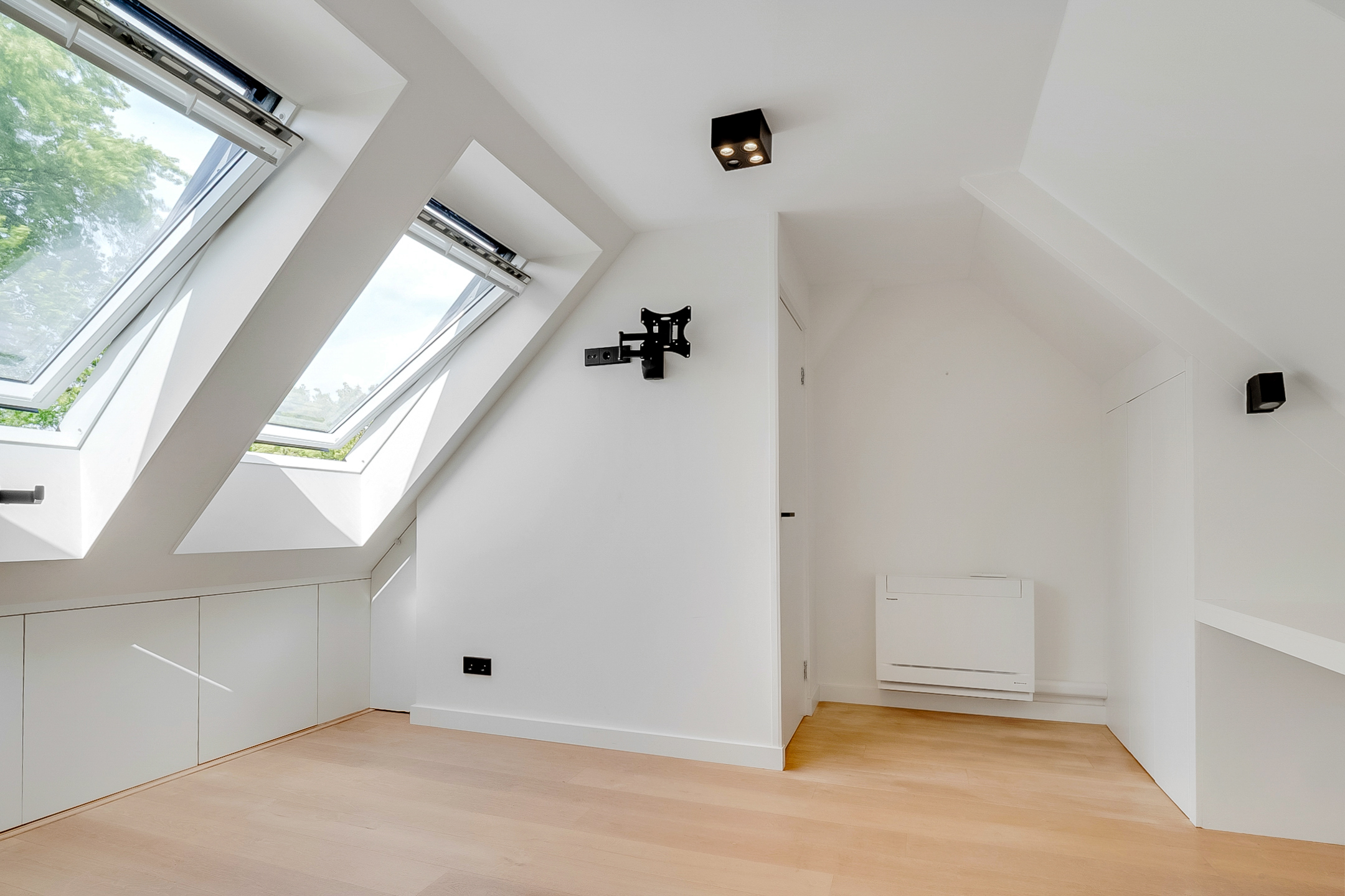 • Veel op maat gemaakte inbouwkasten voor extra opbergruimte