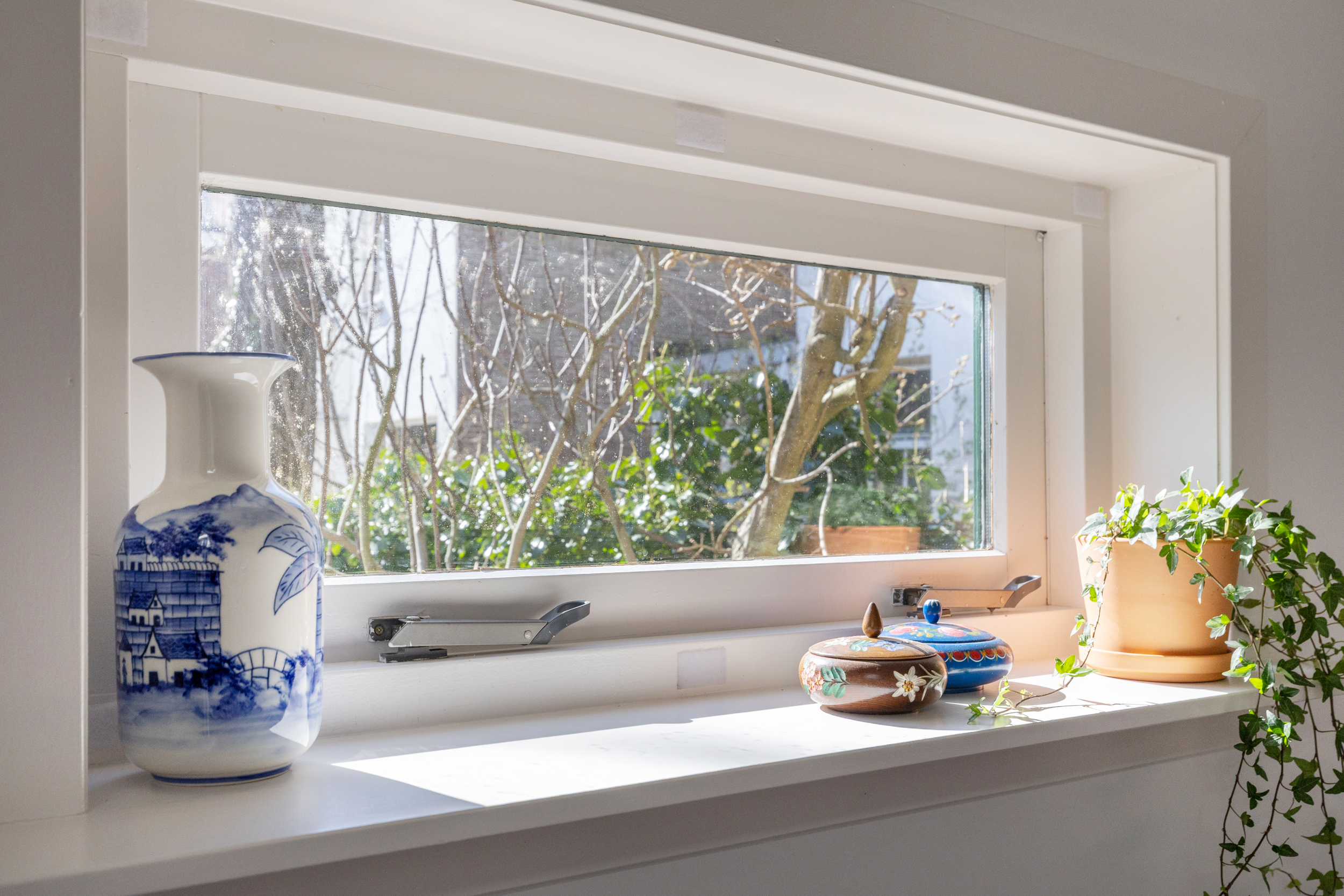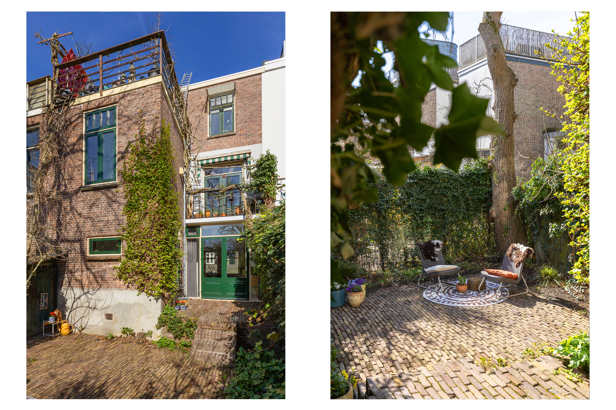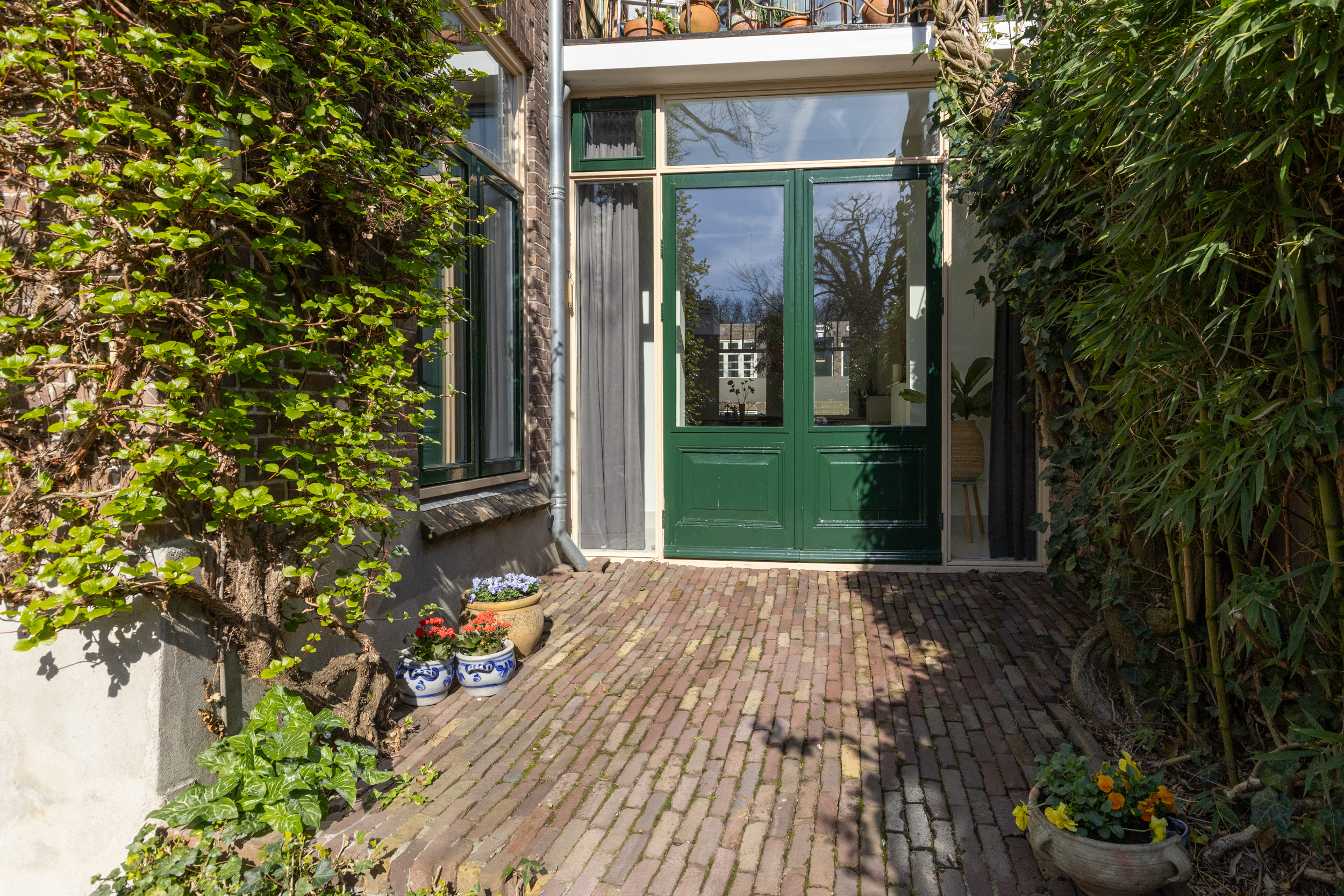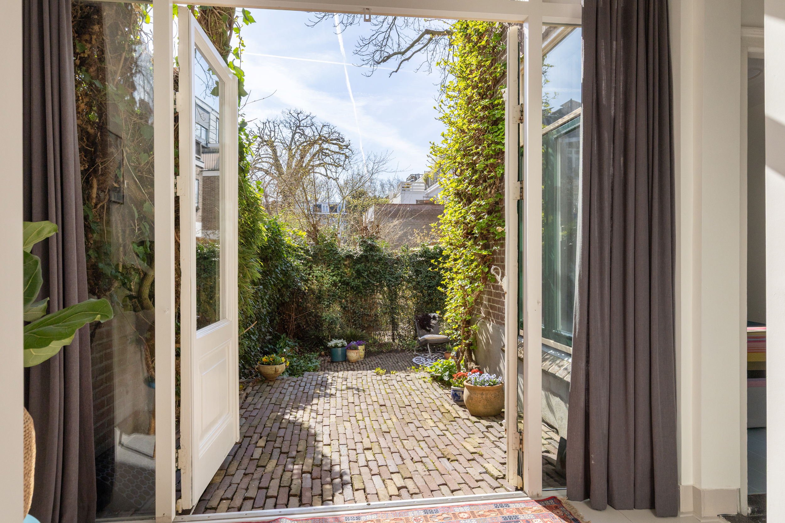 De ruime, verdiepte stadstuin op het zuidwesten is een absoluut pluspunt: zonnig, intiem en onderhoudsvriendelijk. De imposante tamme kastanje biedt beschutting op zomerse dagen. Een heerlijke verlenging van je woonruimte.