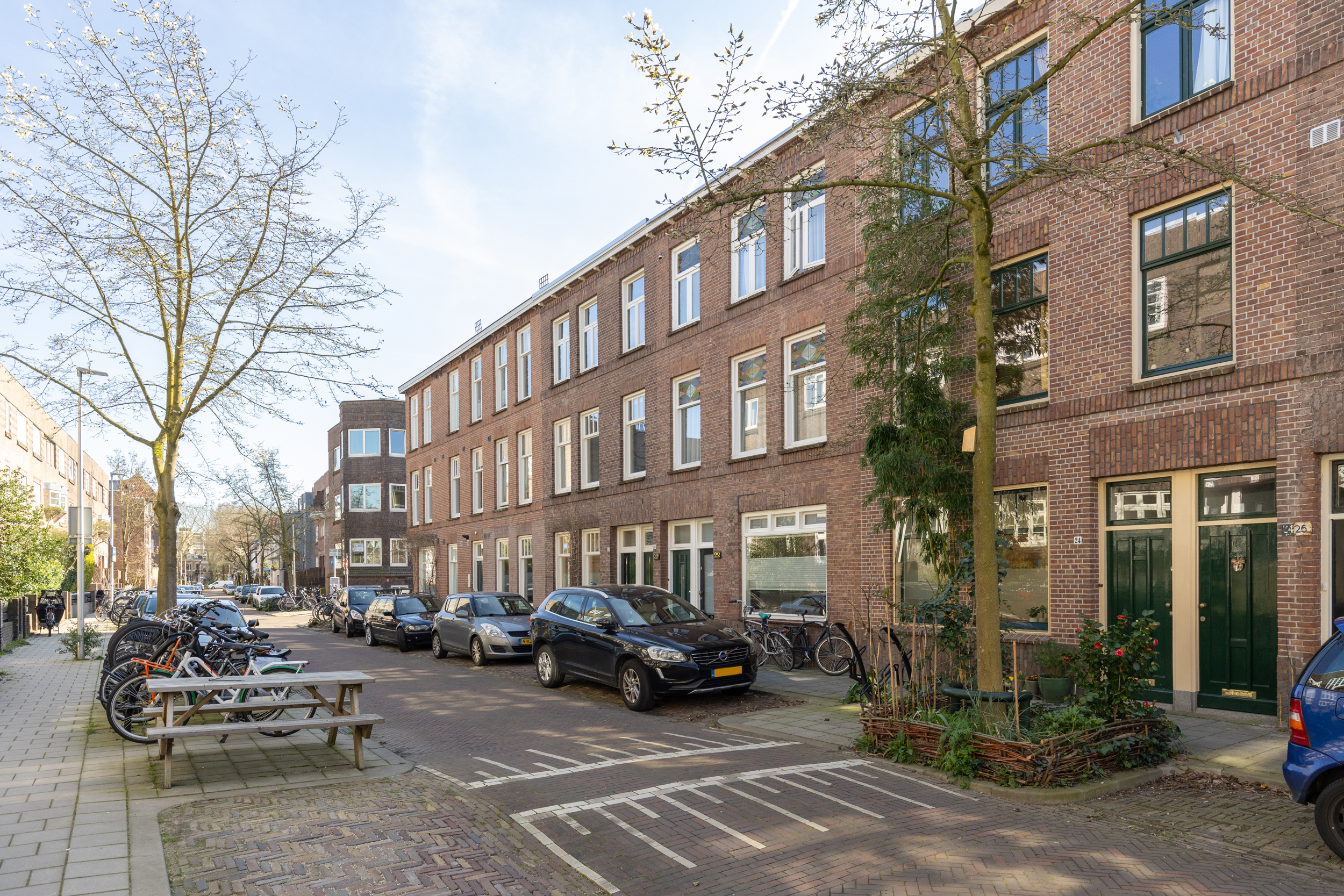 Parkeren kan eenvoudig met een vergunning en een tweede vergunning is direct beschikbaar. In de buurt zijn laadpalen en deelauto’s beschikbaar. Direct voor de deur is fietsparkeergelegenheid gecreëerd en bushaltes vind je op loopafstand.