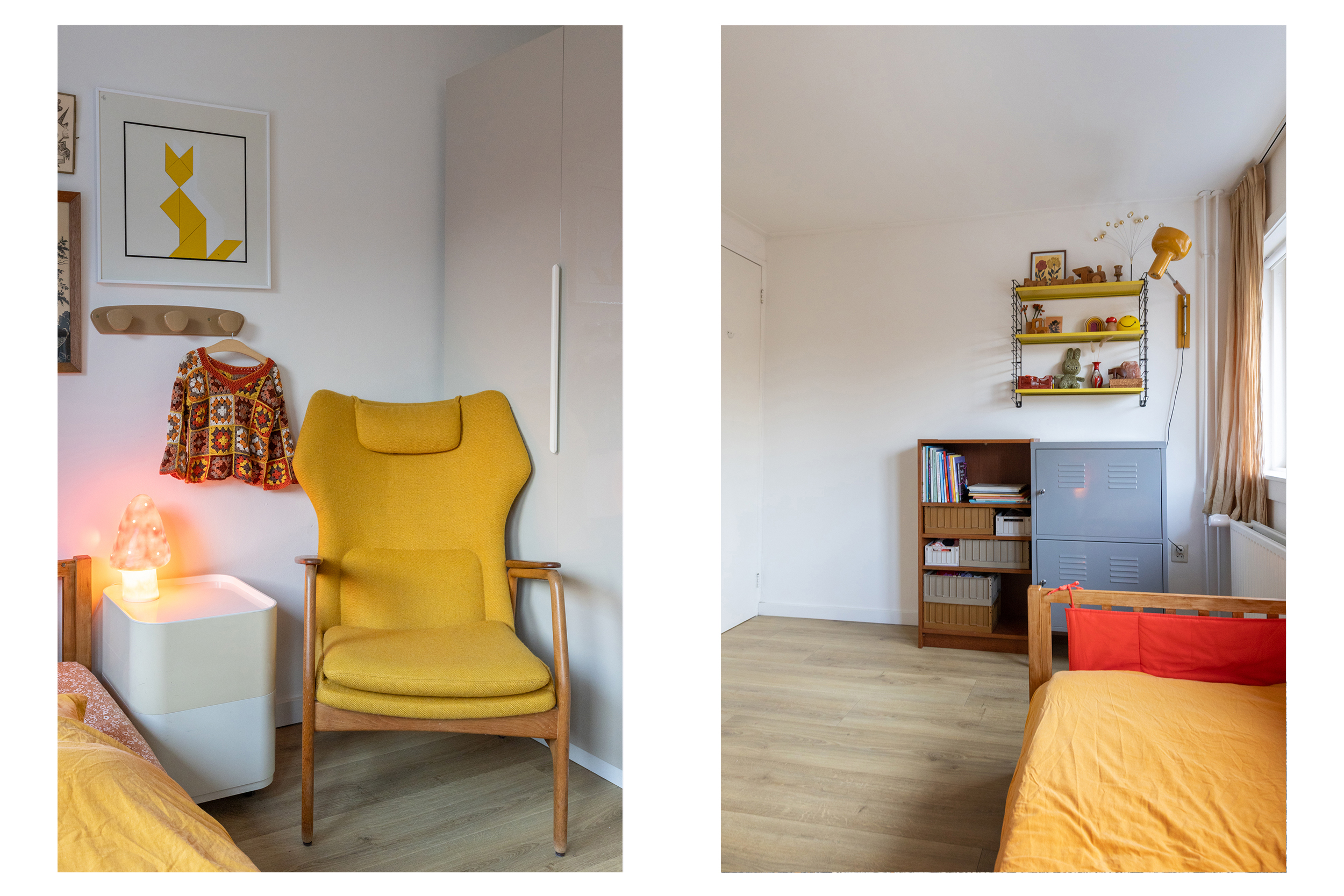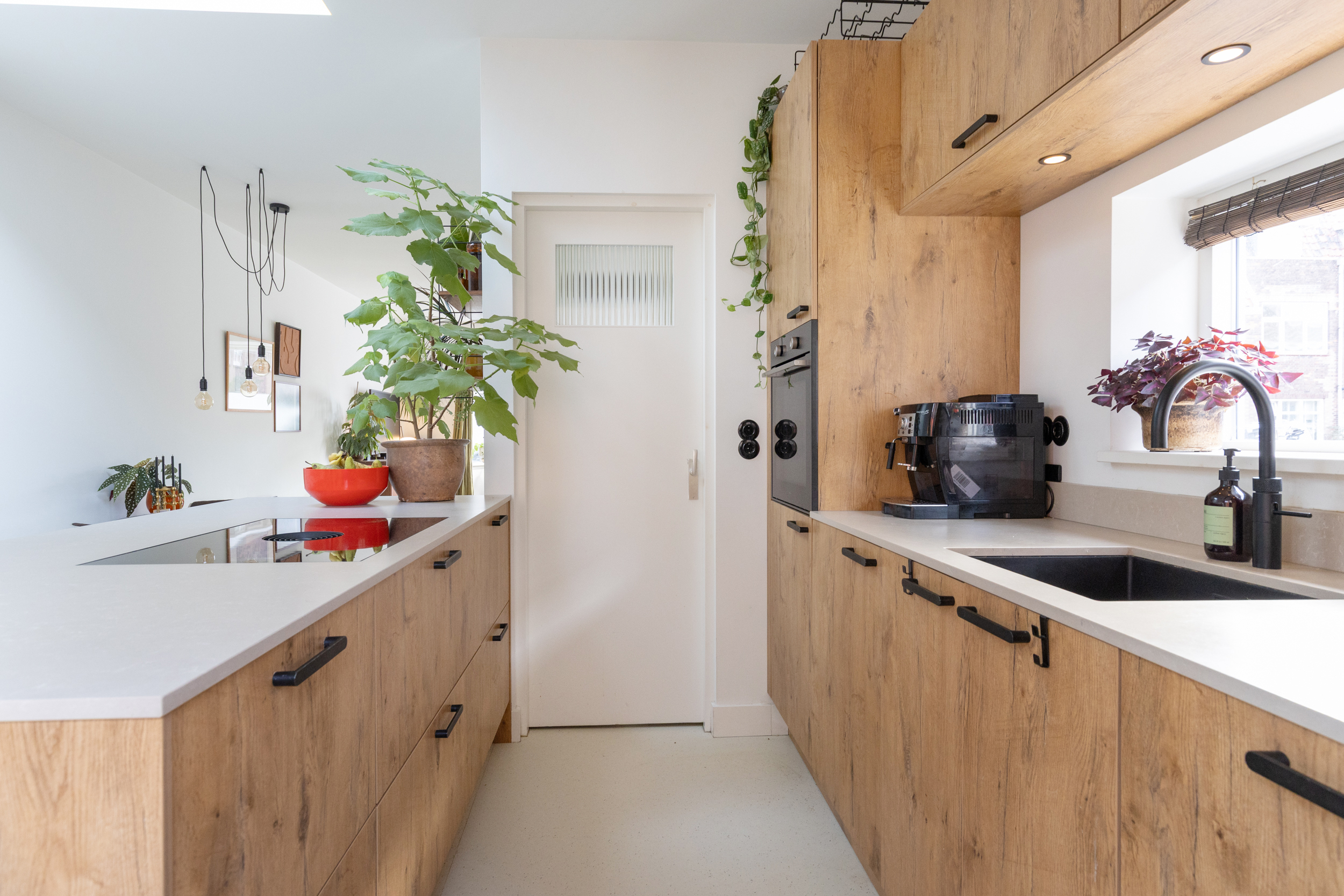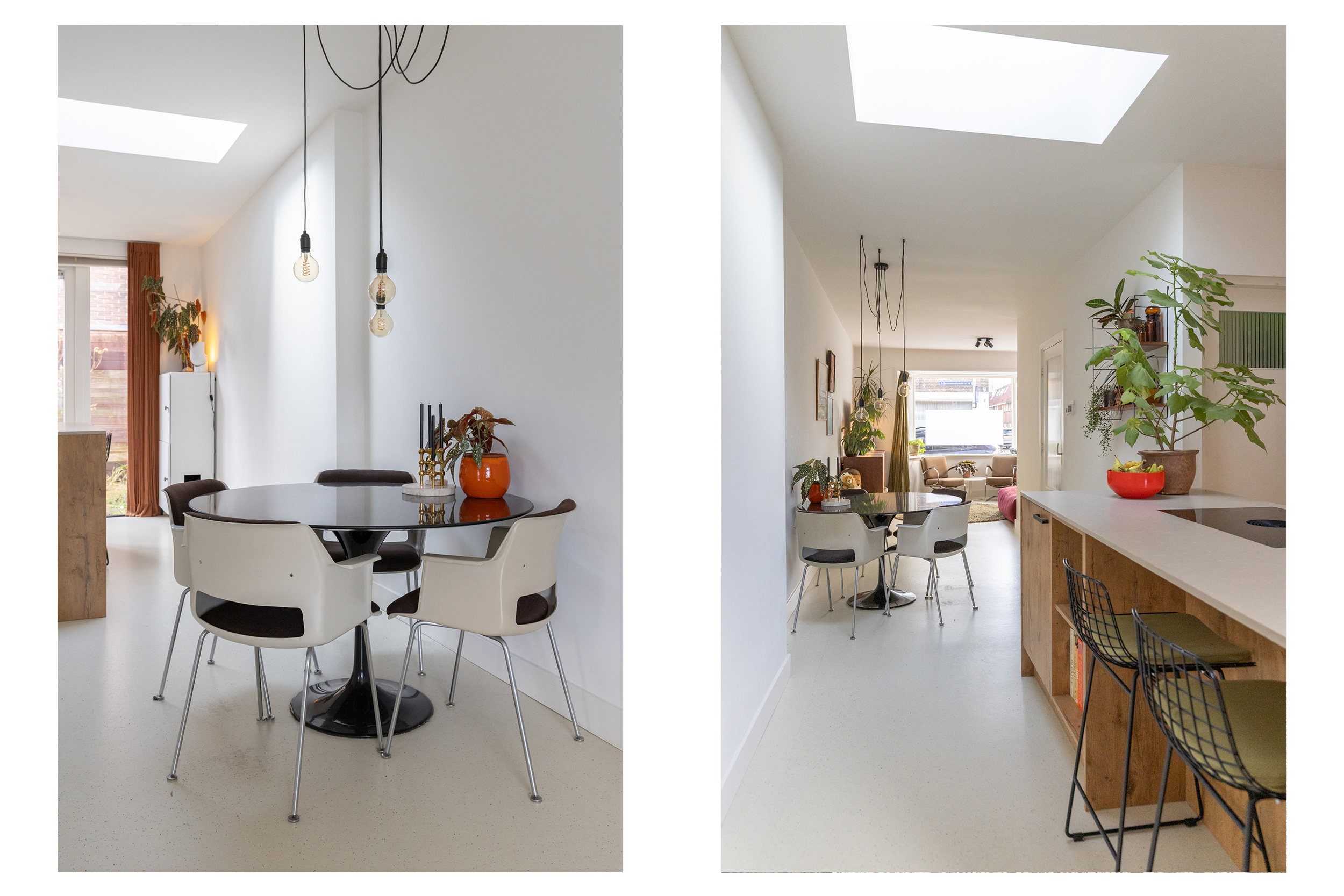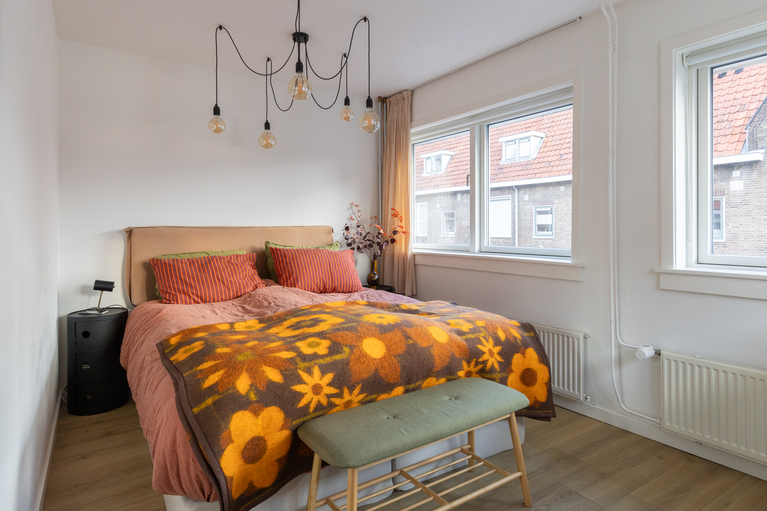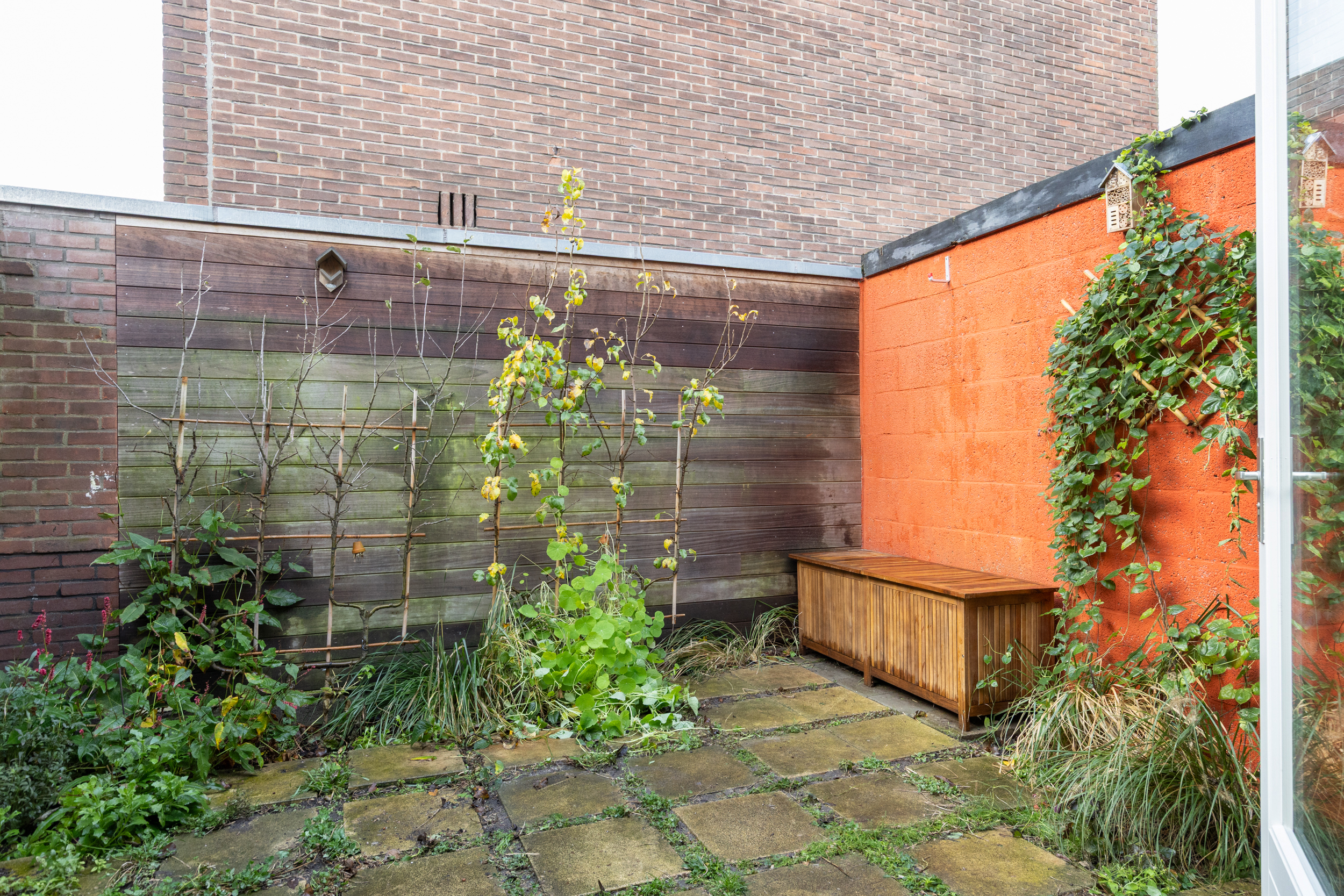 De moderne keuken (2022) is uitgerust met diverse inbouwapparatuur en biedt eveneens toegang tot de tuin. Ook vanuit de straat is er toegang tot de tuin. Op de eerste verdieping zijn twee slaapkamers en een badkamer aanwezig; op de tweede verdieping bevindt zich een extra kamer met dakkapel en veel lichtinval.
