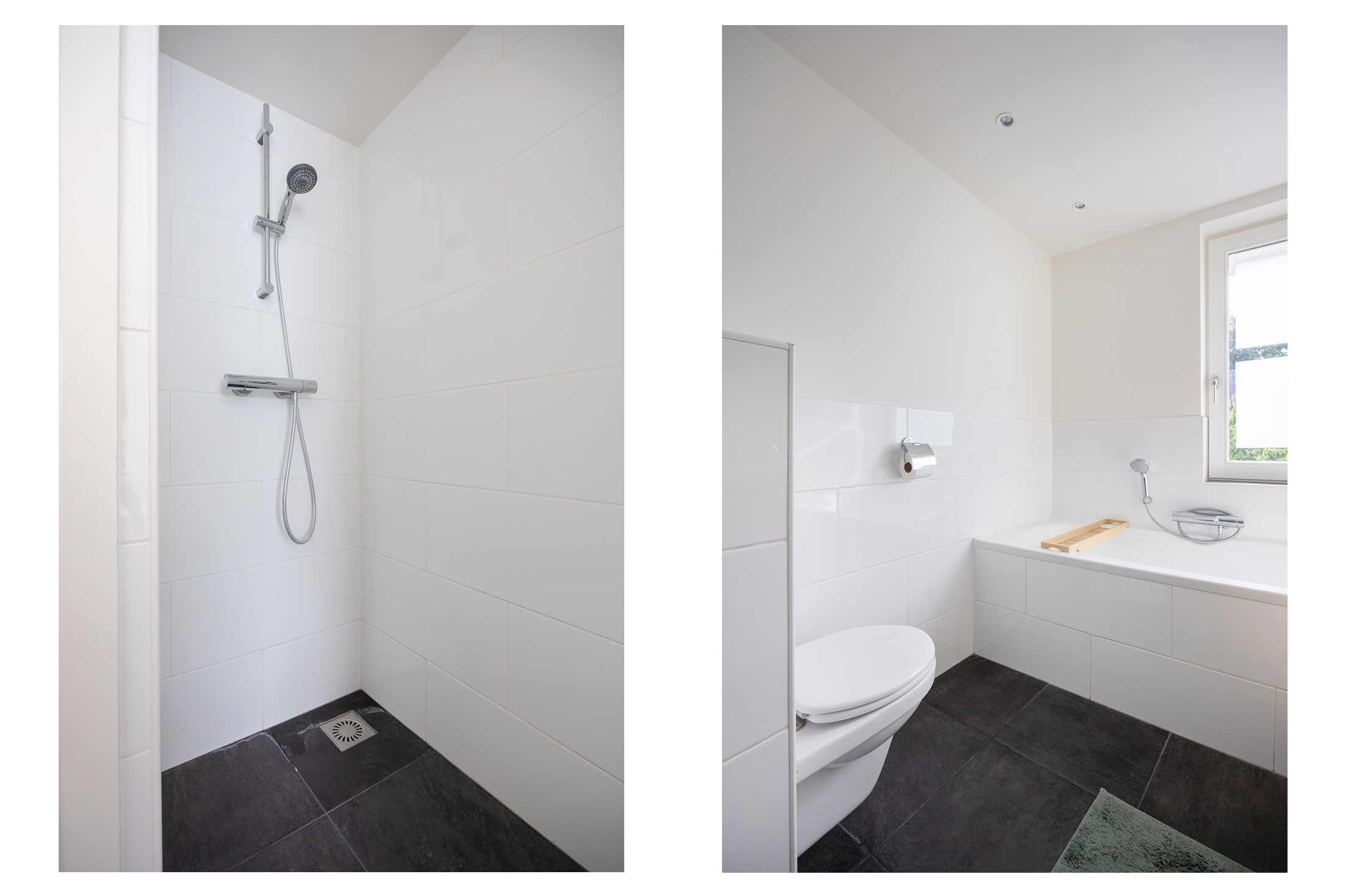 Op deze verdieping bevinden zich drie slaapkamers (ca. 12 m², 16 m² en 4 m²). De grootste slaapkamer aan de voorzijde heeft een inbouwkast. De royale badkamer beschikt over een ligbad, inloopdouche, toilet en wastafelmeubel.