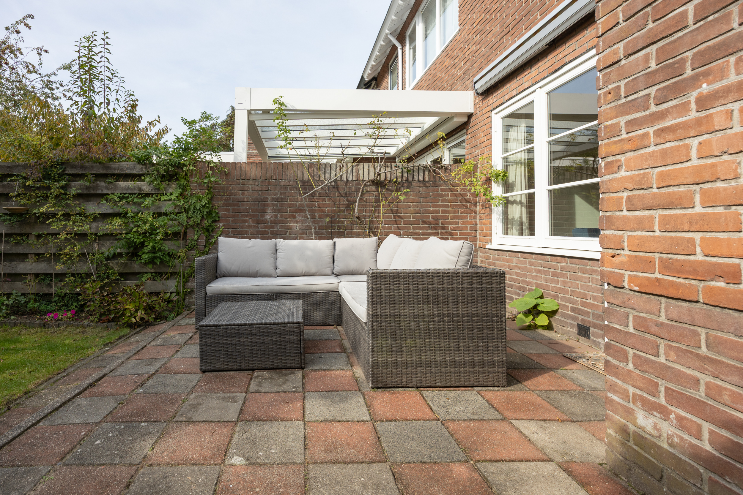 De zonnige achtertuin ligt op het zuidwesten en is bereikbaar via een achterom vanaf zowel de Laan van Henegouwen als de Laan van Cattenbroek. Er zijn twee schuren met veel bergruimte. Door de gunstige ligging geniet je hier van privacy én zon. Vanuit de woonkamer kijk je het hele jaar uit op vogels in de tuin, en in de zomer pluk je kersen van je eigen boom.
